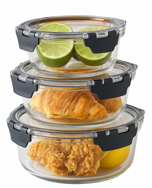 Combo x3 recipientes redondos de vidrio diferentes tamaños