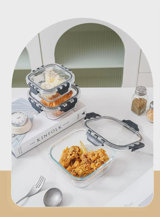 Set x3 refractarías-portacomidas de vidrio cuadrados