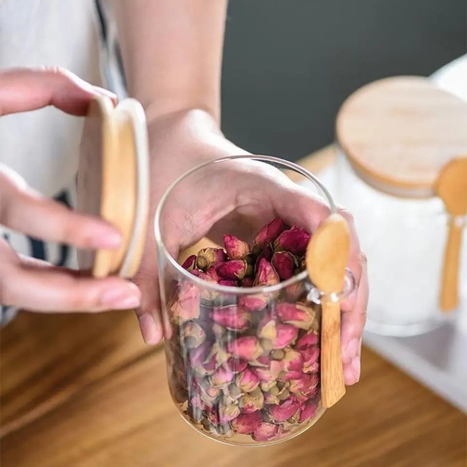 ¡Manten tus alimentos frescos y deliciosos con nuestros recipientes redondos de vidrio! Hechos de vidrio de alta calidad, estos recipiente son totalmente herméticos y cuentan con una tapa y cuchara de bambú. Ideal para llevar tu comida favorita, como avena trasnochada o ensalada, a donde sea que vayas.