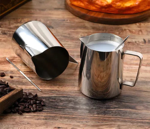 Esta jarra para espumar de acero inoxidable de 350 ml es el accesorio ideal para lograr la textura perfecta en tus bebidas. Su capacidad es perfecta para preparar espuma cremosa y consistente, mientras que su material duradero garantiza resistencia y fácil limpieza. Eleva la presentación y el sabor de tus cafés y chocolates con esta jarra diseñada para profesionales y amantes del buen sabor.