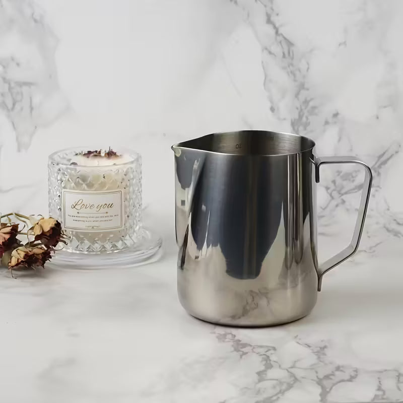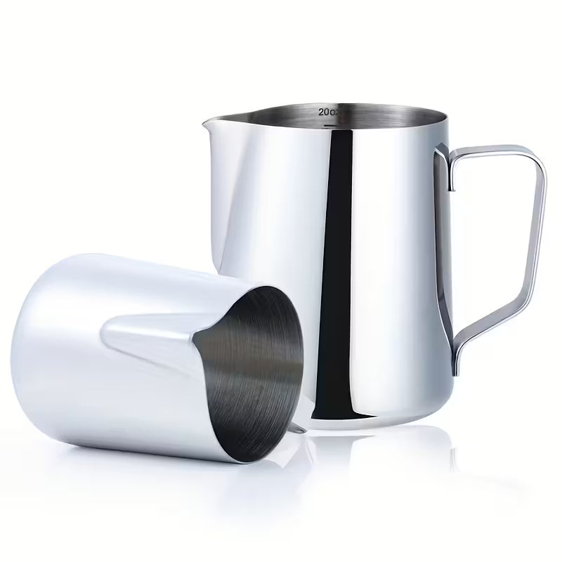 Disfruta de la mejor textura en tus bebidas con esta jarra para espumar de acero inoxidable, con capacidad de 600 ml. Su diseño robusto y elegante permite un vertido preciso y fácil limpieza, ideal para crear espumas cremosas y darle un toque profesional a tu café o latte en casa. Perfecta para baristas y amantes del café que buscan calidad y durabilidad en cada uso. Lleva tu experiencia cafetera al siguiente nivel con esta jarra esencial.