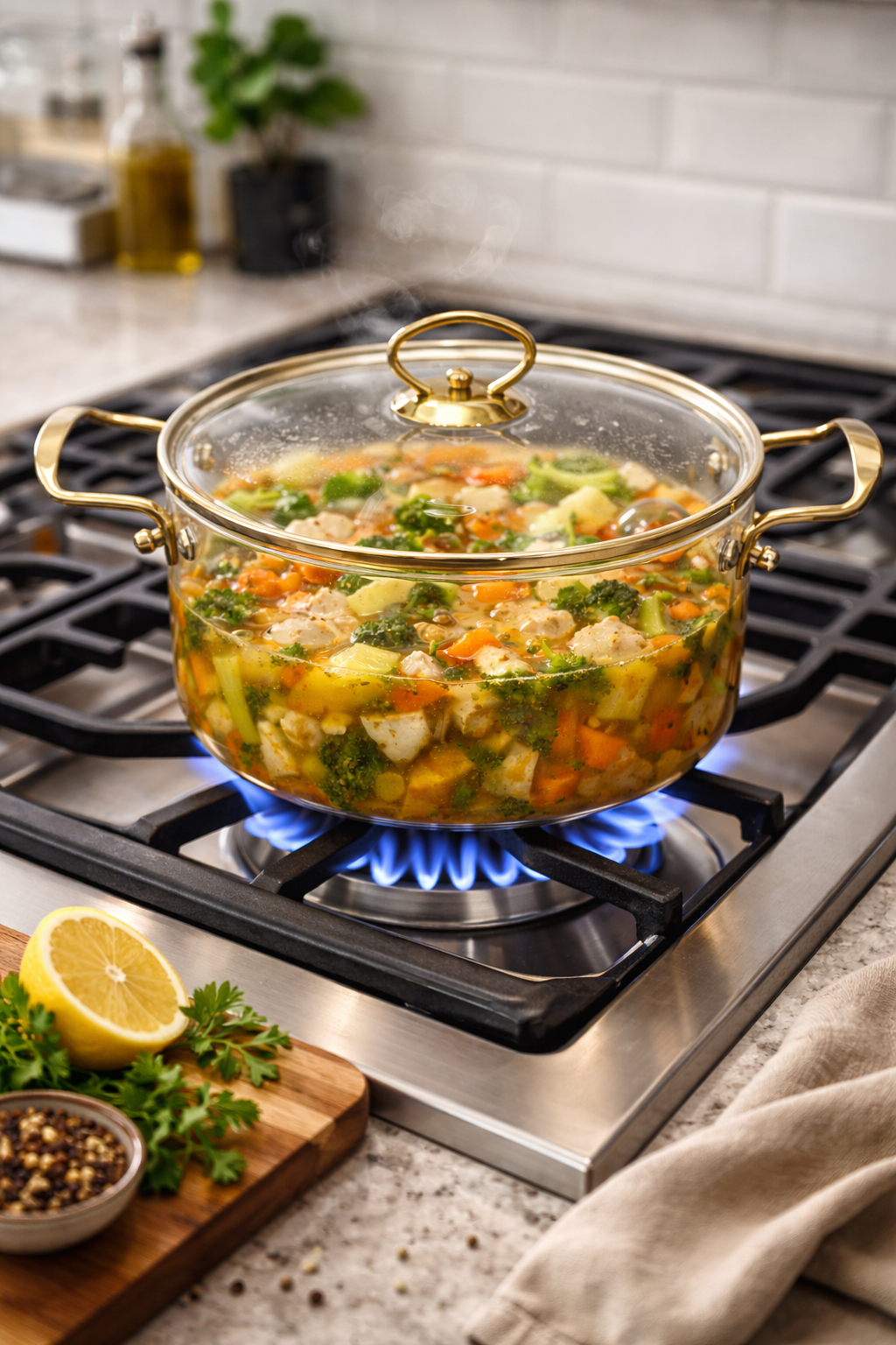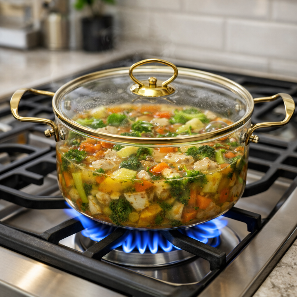 Descubre la combinación perfecta de estilo y rendimiento con esta olla de 2.5 litros en vidrio borosilicato. Su diseño elegante transforma tu cocina en un espacio más refinado, mientras que su material resistente garantiza años de uso confiable. El vidrio borosilicato soporta temperaturas extremas sin comprometer su integridad, permitiéndote cocinar con total tranquilidad. Monitorea tus preparaciones en tiempo real gracias a su transparencia cristalina, ideal para sopas, caldos y bebidas especiales. Versátil y duradera, esta olla se adapta a cualquier tipo de estufa. Elige un utensilio que refleja tu exigencia por la calidad y el buen gusto en cada detalle de tu cocina.