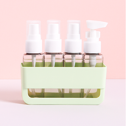 Este set de 4 botellas viajeras, presentado en una práctica caja, cuenta con dosificadores con seguro que evitan cualquier derrame. Su diseño compacto y funcional las hace fáciles de transportar a donde quieras, ideales para viajes por aire, mar o tierra. Lleva tus líquidos esenciales organizados y seguros, siempre listos para acompañarte en todas tus aventuras.