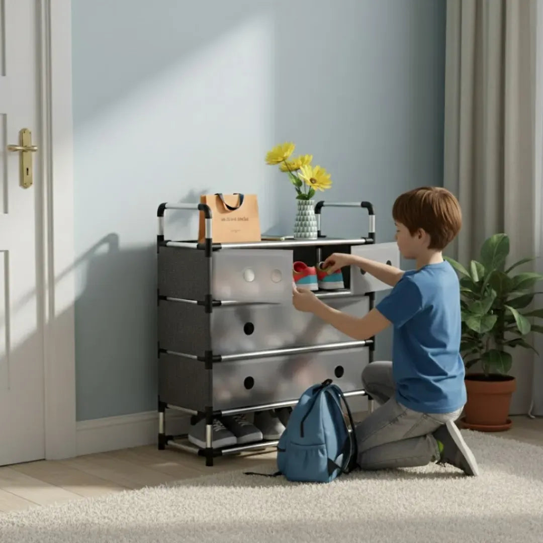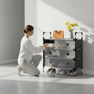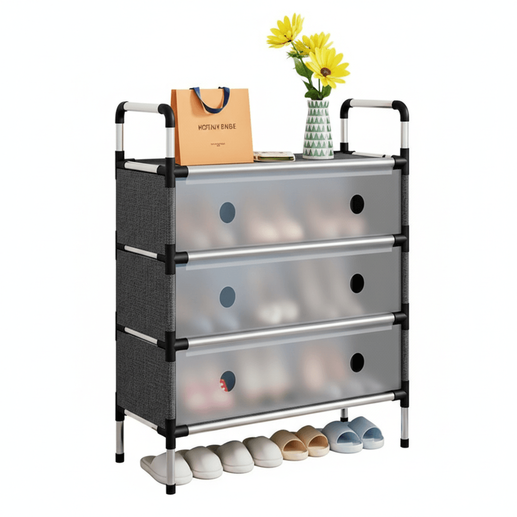 Zapatero moderno de 3 niveles con puertas transparentes que te permite organizar y visualizar tu colección de calzado sin ocupar mucho espacio. Diseño práctico y funcional que se adapta a cualquier ambiente del hogar. Fácil de armar y perfecto para maximizar el almacenamiento en entradas, dormitorios o closets. Estructura resistente que mantiene tus zapatos protegidos y ordenados de manera elegante.